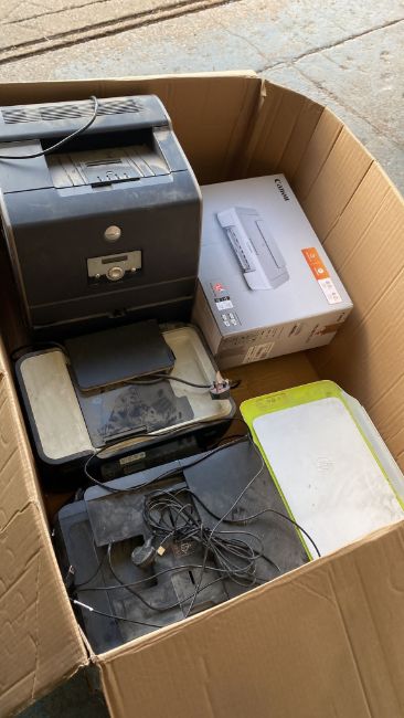pallet of mixed used printers, all untested from office clearance, also a quantity of new and used printer toners