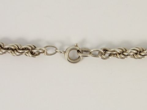 Here for sale, we have this beautiful rope chain necklace, made from sterling silver with a gorgeous style and design. Weight: 20 grams Measures: 15.25" Width: 5mm |