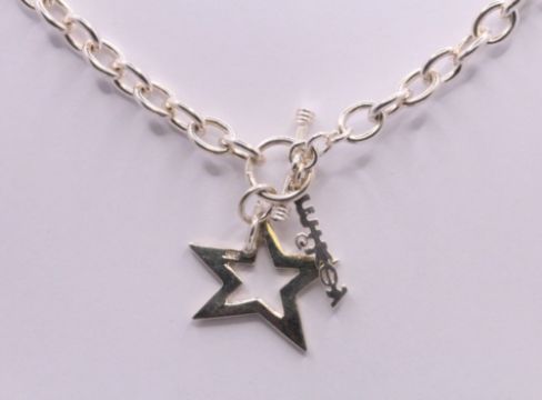 Here we have a stunning sterling silver Mikey chain necklace with a star toggle clasp.