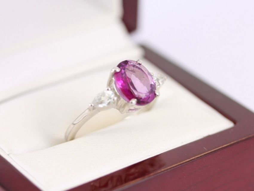 Here for sale we have this beautiful ring, made from sterling silver with a gorgeous style and set with a lovely oval facet cut Amethyst flanked by two CZ stones.