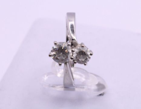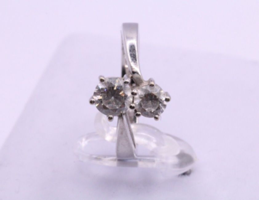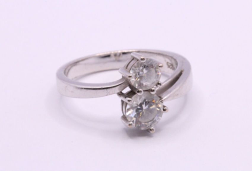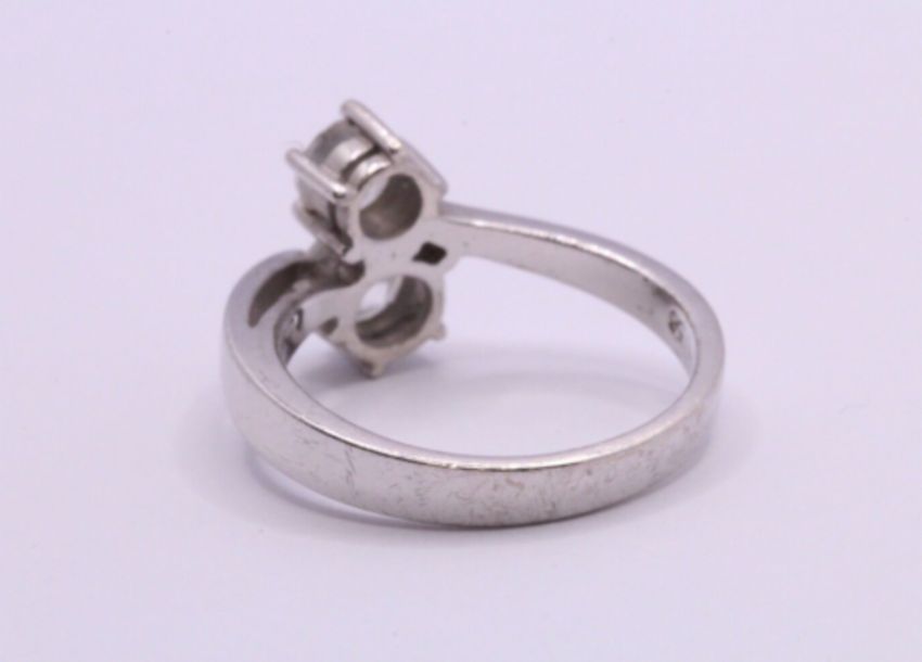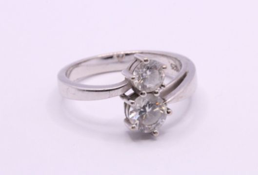 Here we have a magnificent sterling silver bypass ring with sparkling simulated diamonds.