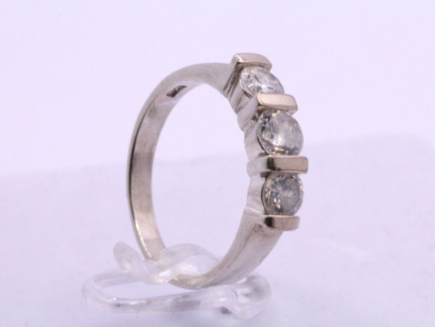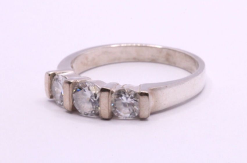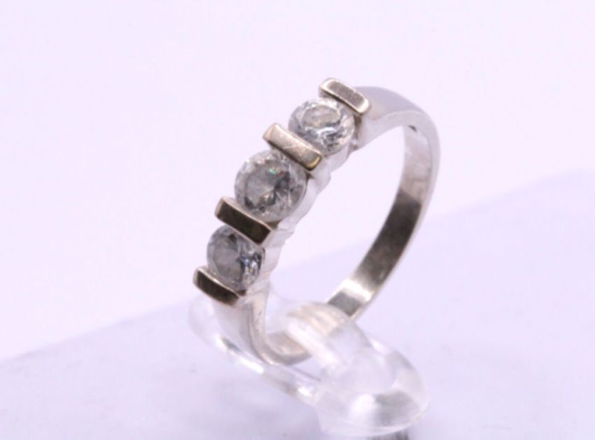 Here we have a splendid sterling silver ring with three sparkling simulated diamonds.