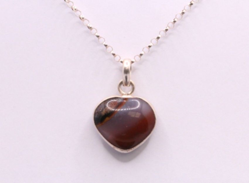 Here we have a classic sterling silver cable chain necklace with a stunning Jasper gemstone pendant charm.