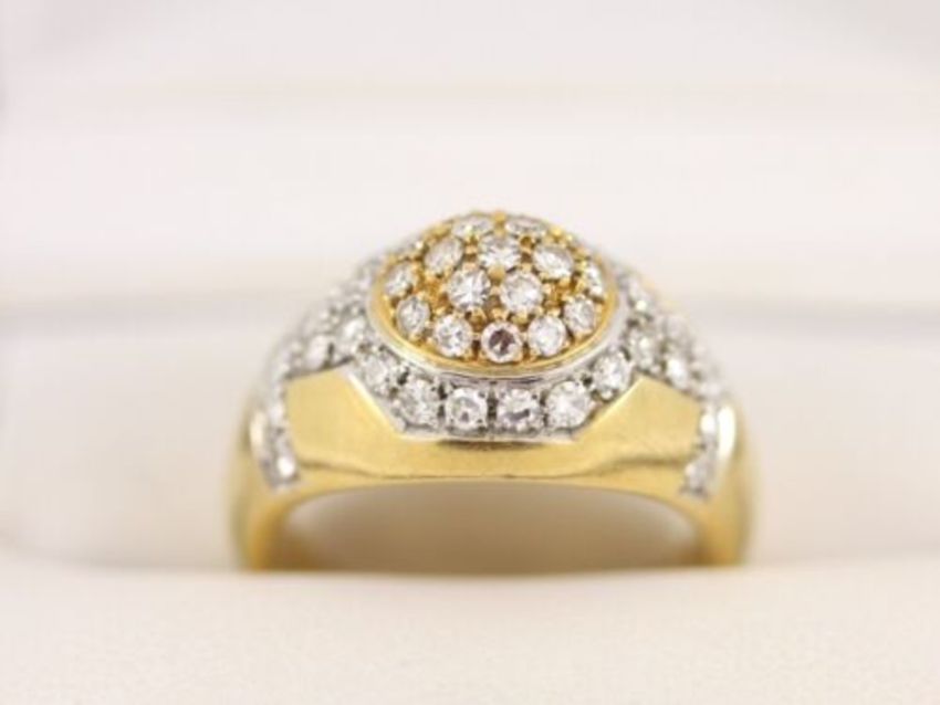 Here for sale we have this magnificent ladies cluster ring, a gorgeous 18ct yellow gold shank set with forty-nine eightcut diamonds weighing a total of 1ct.
