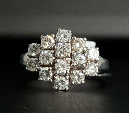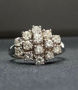 This stunning dress ring features dazzling round brilliant cut diamonds in a stylish claw setting, A bold design with a striking modern appearance, the ring has been crafted in 9ct white gold.