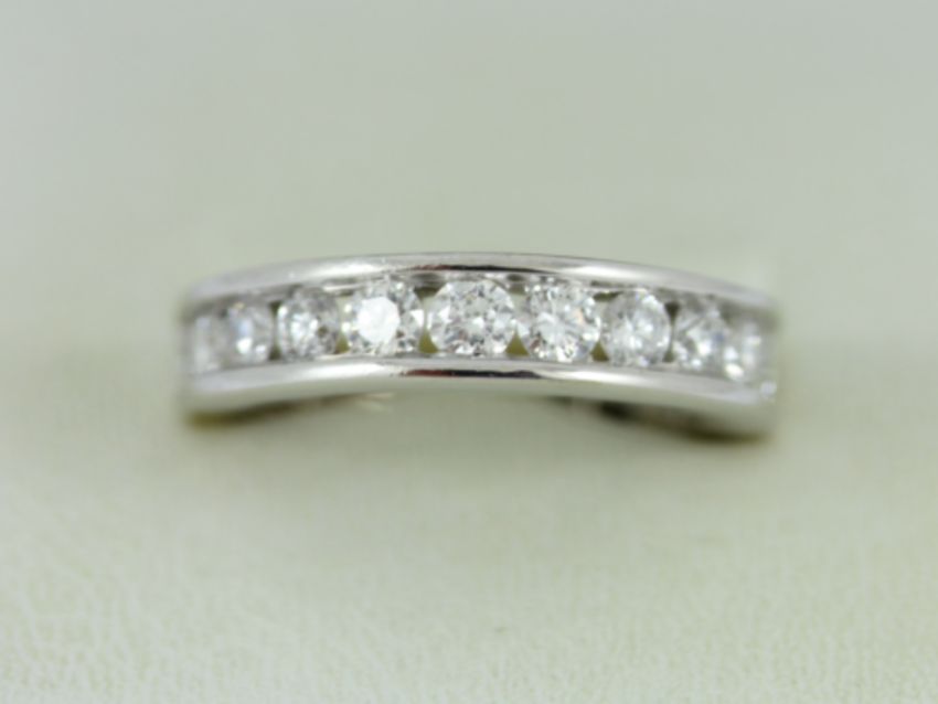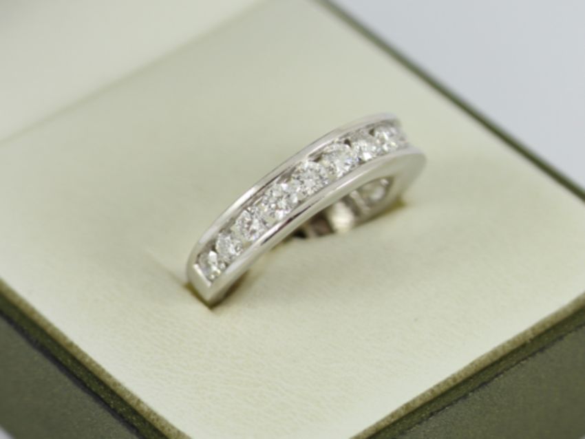 Here for sale, we have this magnificent ladies half eternity ring. Thirteen brilliant cut diamonds weighing a total of 1.30ct channel set in a lovely 18ct white gold band.