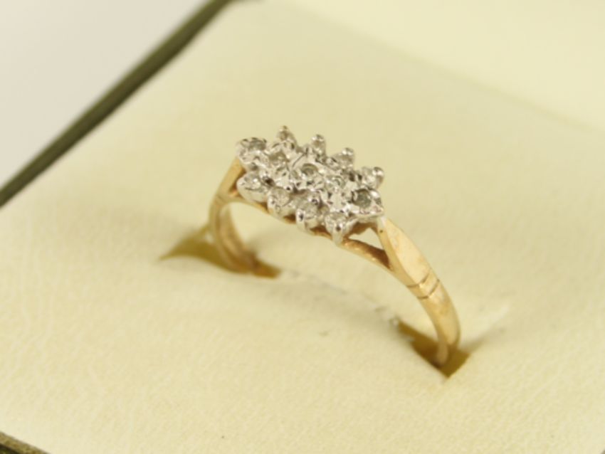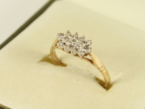 Here for sale, we have this magnificent ladies cluster ring. Thirteen lovely brilliant cut diamonds set on a 9ct yellow gold shank.