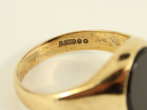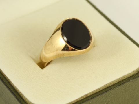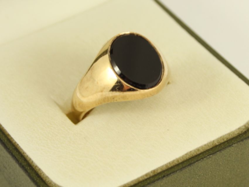 Here for sale, we have this magnificent gents signet pinky ring made from 9ct yellow gold and set with a lovely piece of onyx.