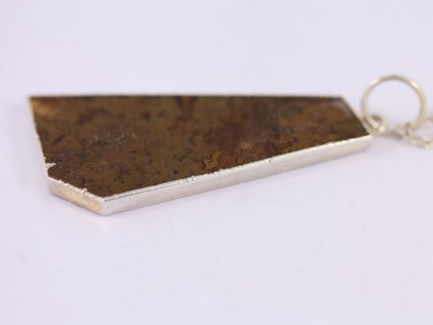 Here for sale we have this magnificent pendant, a beautiful piece of agate in a silver frame (silver in colour, no hallmarks to show sterling) on a lovely sterling silver chain necklace. Chain Length: 16 inches Weight: 4.5 grams Pendant Measures: 39mm x 19mm, 3mm thick Chain Width: 1.5mm |