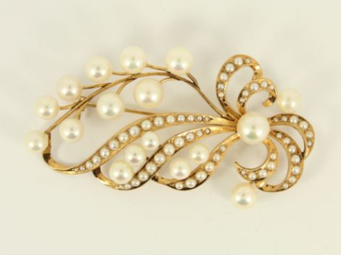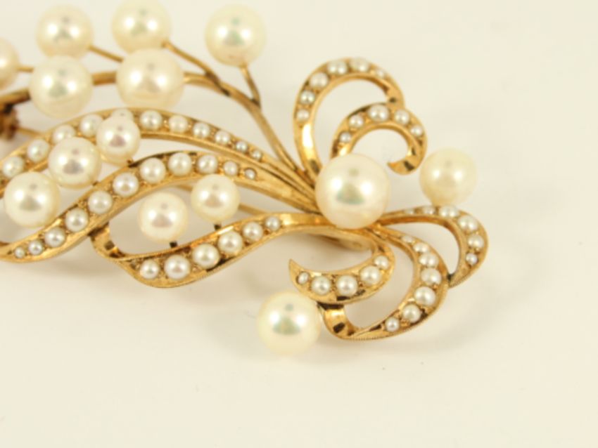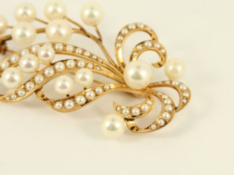 Here for sale, we have this magnificent ladies brooch made from 14k yellow gold and set with absolutely stunning natural pearls.