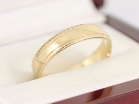 Here for sale we have this magnificent ladies D shaped wedding band, made from 9ct yellow gold.