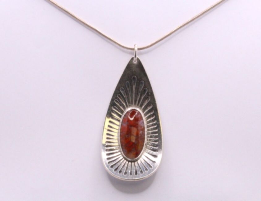 Here we have a superb Copper Turquoise gemstone pendant charm on a classic sterling silver omega chain necklace.