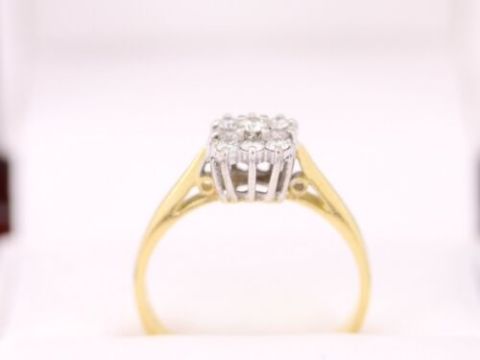 Cluster diamond ring, cluster of nine brilliant cut diamonds claw set, Head Measures: 7mm x 7mm |