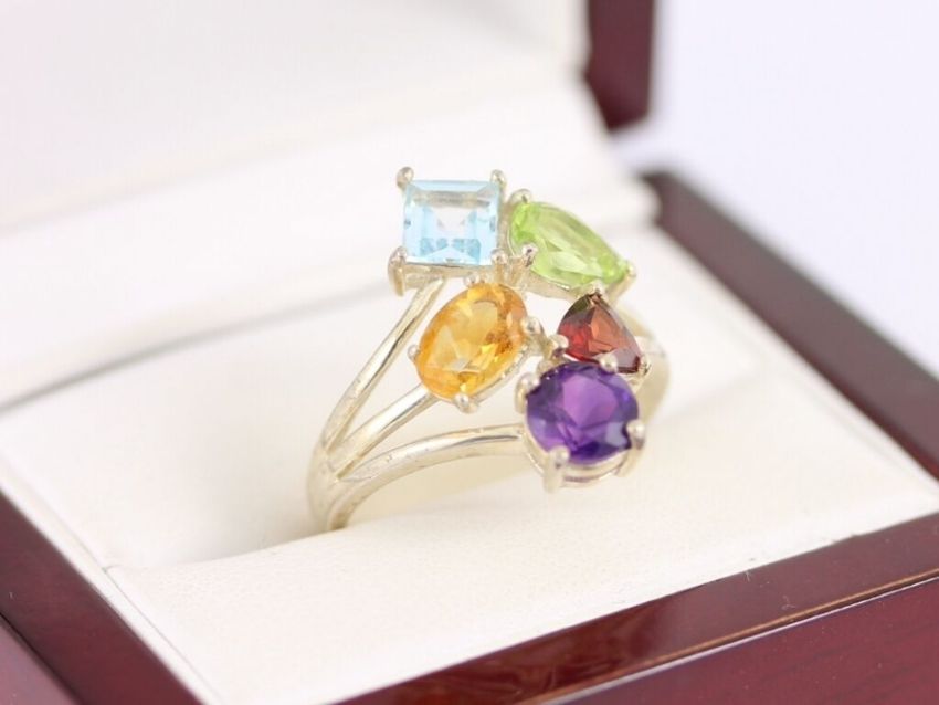 Here for sale we have this beautiful ring, made from sterling silver with a gorgeous style and set with beautiful synthetic gemstones.