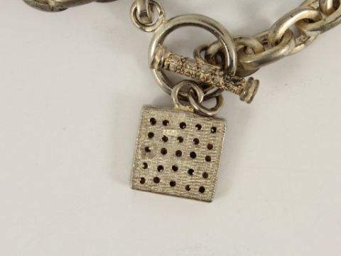 Here for sale we have this beautiful ladies bracelet made from sterling silver with a little cluster charm set with CZ stones and a T bar fastening.
