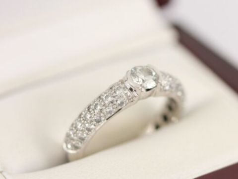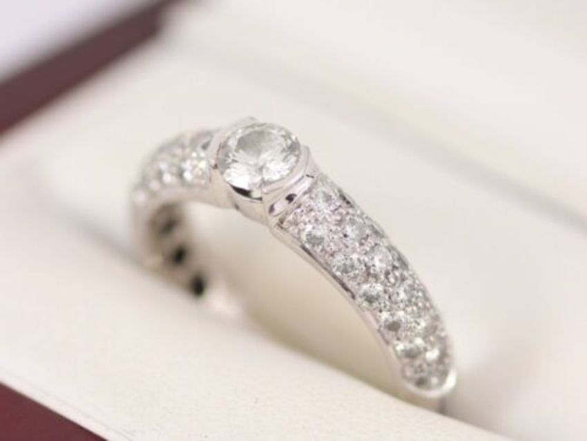Here for sale we have this magnificent ladies solitaire ring, a gorgeous brilliant cut diamond flanked by nineteen smaller diamonds in either shoulder set on a lovely 18ct white gold shank.