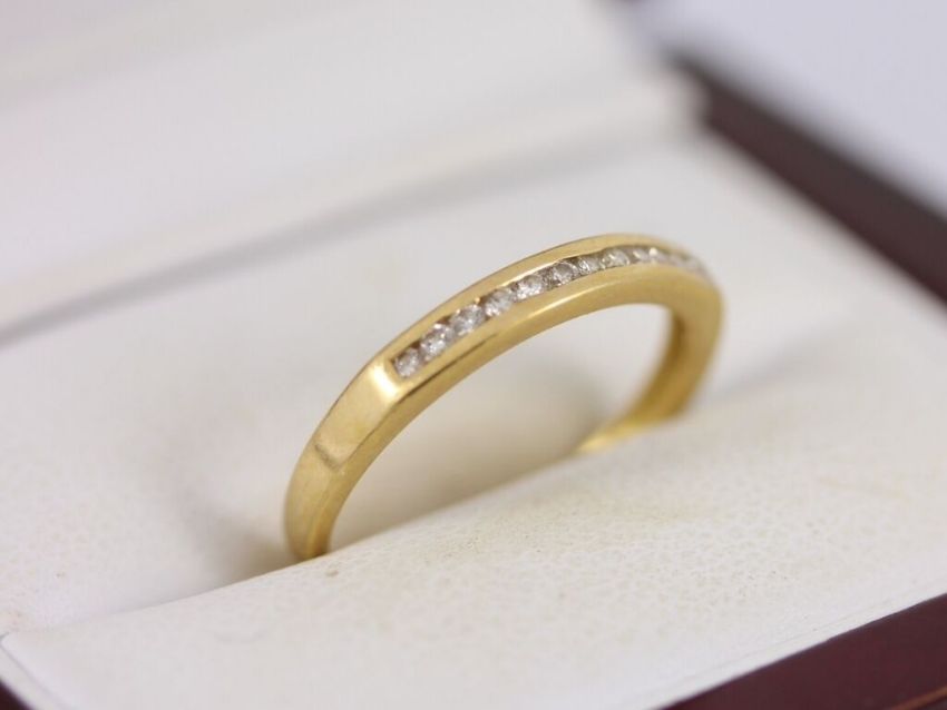 Here for sale we have this stunning ladies eternity ring, twelve gorgeous brilliant cut diamonds channel set in a lovely 19K yellow gold shank.
