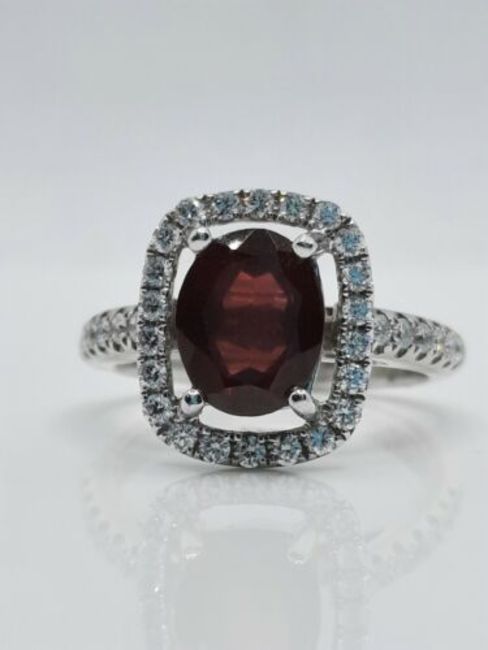 Representing luxury and beauty, this stylish gemstone ring is simply sensational. With a design that includes a red central garnet and a beautiful diamond four claw studded surround.