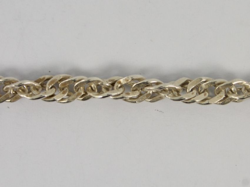 Here for sale, we have this magnificent Prince of Wales chain necklace made from sterling silver. Weight: 22 grams Measures: 17.5 inches Width: 6mm |