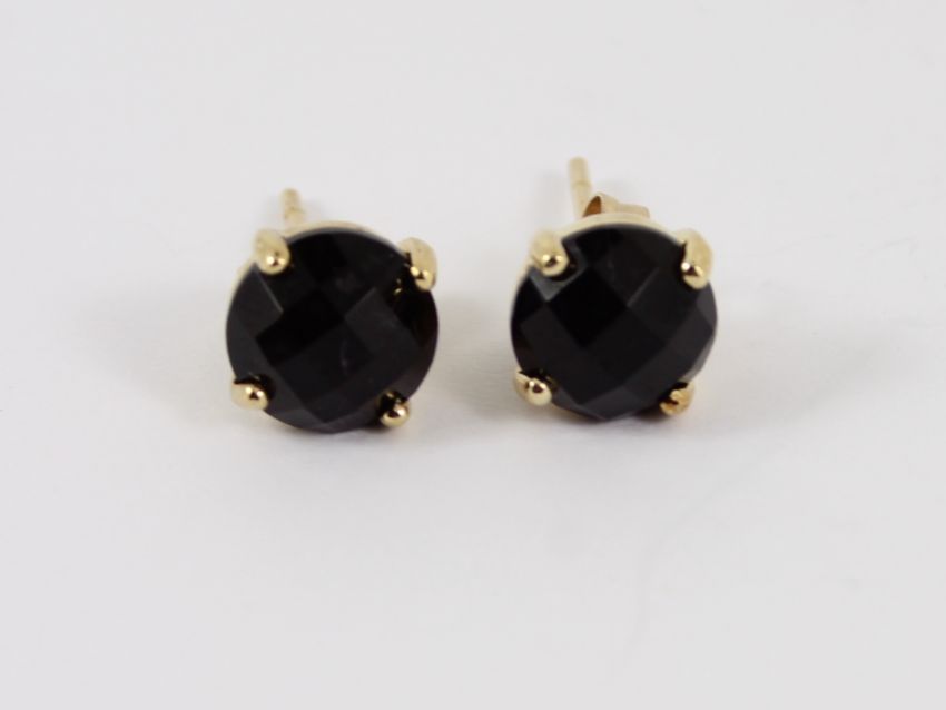 Here for sale, we have this magnificent stud earrings made from 9ct yellow gold and each set with a multifacet cut onyx stone.