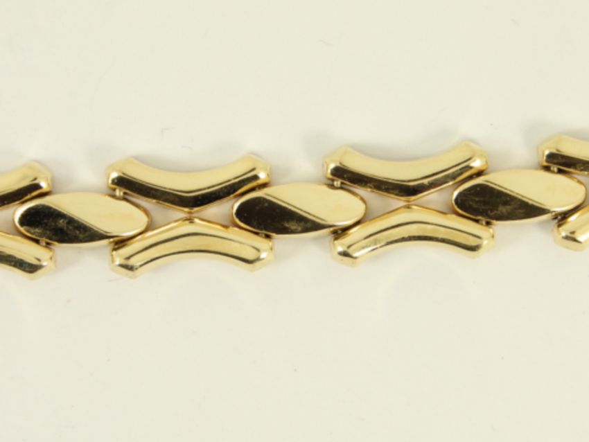 Here for sale, we have this magnificent ladies cross link bracelet made from 14k yellow gold with a gorgeous design and style.