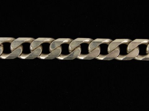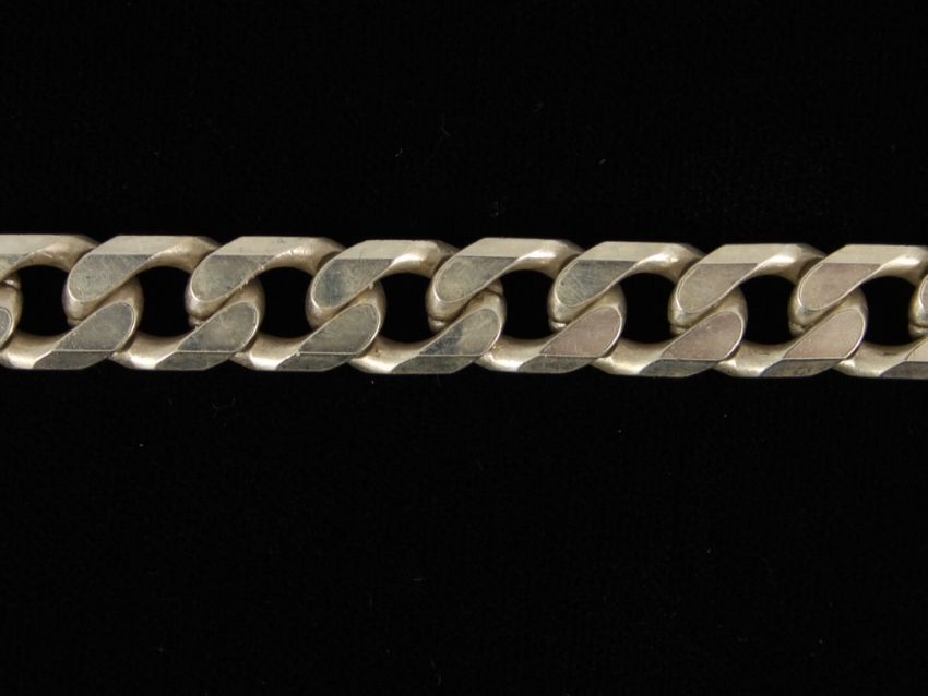 Here for sale, we have this magnificent gent's curb chain necklace made from sterling silver. Weight: 50.1 grams Measures: 20.25 inches Width: 8mm |