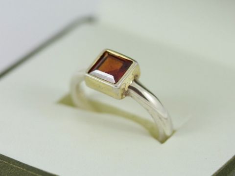 Here for sale we have this beautiful ring, made from sterling silver with a sterling silver gold tone finish head set with a lovely princess cut garnet.