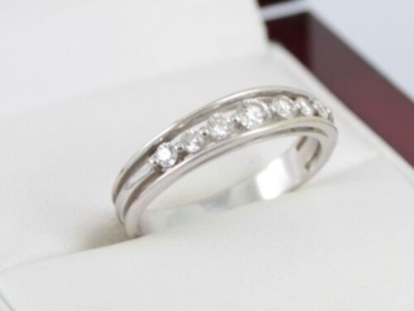 Here for sale we have this magnificent ladies diamond eternity ring, seven gorgeous diamonds channel set in a lovely 18ct white gold shank.