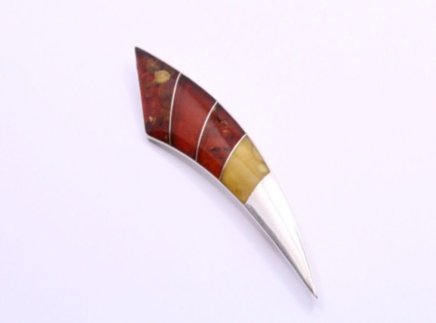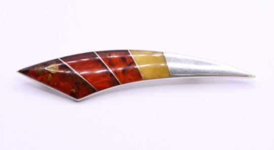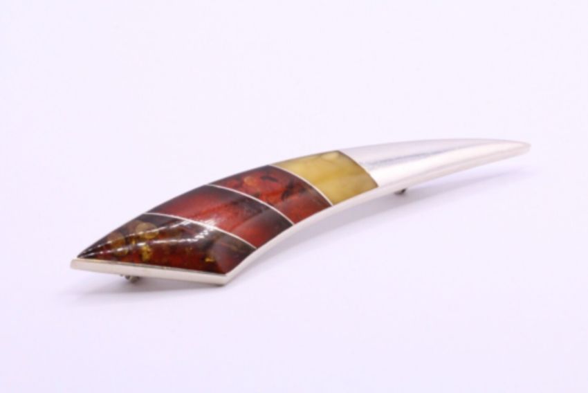 Here we have a magnificent sterling silver brooch with precious multi-coloured Amber gemstones.