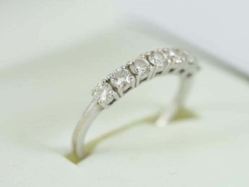 Here for sale we have this magnificent ladies seven stone ring, seven stunning brilliant cut diamonds weighing a total of 0.50ct set on a lovely 18ct white gold shank. This ring would make an ideal gift for a loved one. Size: L Weight: 2.4 grams Head measures: 19mm x 3mm Head/setting height: 3mm Shank width: 1mm tapering to 1.5mm All diamonds are tested, 100% genuine.