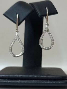 These exquisite drop earrings are beautifully crafted in 9ct White Gold. The bottom of the earring adorns 24 round brilliant cut Diamonds to add a glamourous sparkle to this design. The earring is secured in the ear with a hook.