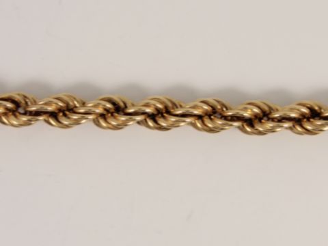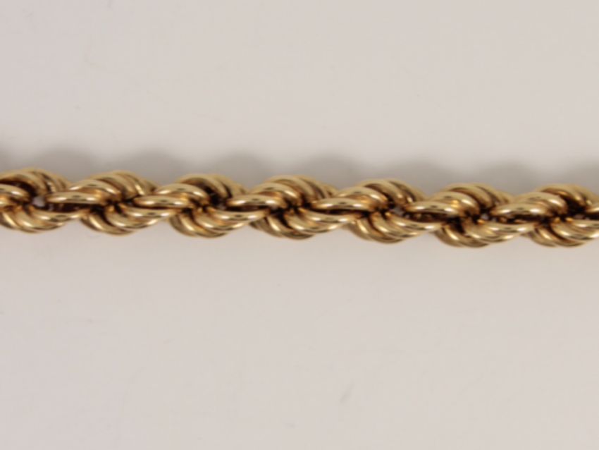 Here for sale, we have this magnificent rope chain necklace made from 9ct yellow gold. Weight: 8.7 grams Chain Length: 18.25 inches Width: 5mm Please take a look at our other items for sale. |