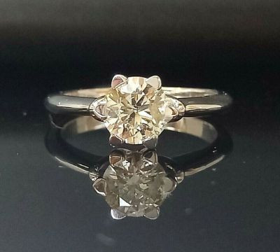 This breathtaking ring dazzles with an expertly cut 1.02ct diamond in centre stage, held in an unusual six claw setting and sparkling with its exceptional colour and clarity.