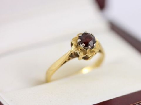 Here for sale we have this magnificent ladies ring, a stunning synthetic garnet set on a lovely 18ct yellow gold shank.
