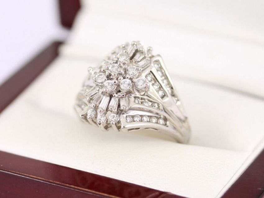 Here for sale we have this beautiful ring, made from sterling silver with a gorgeous style and set with lovely circular facet and baguette cut CZ stones.