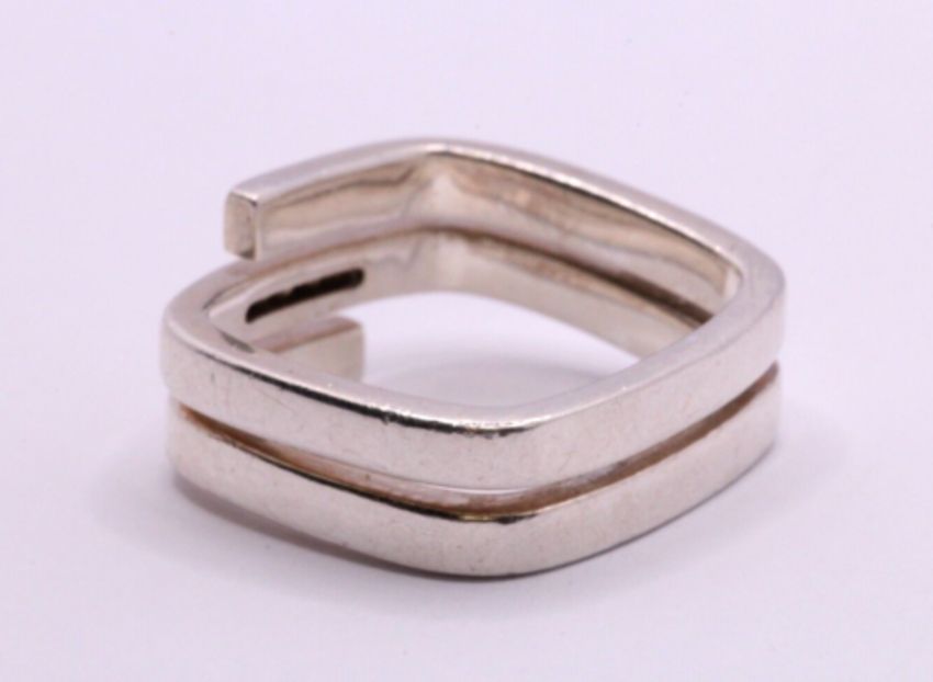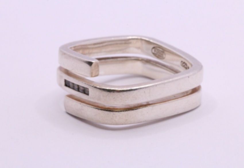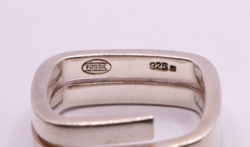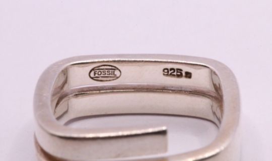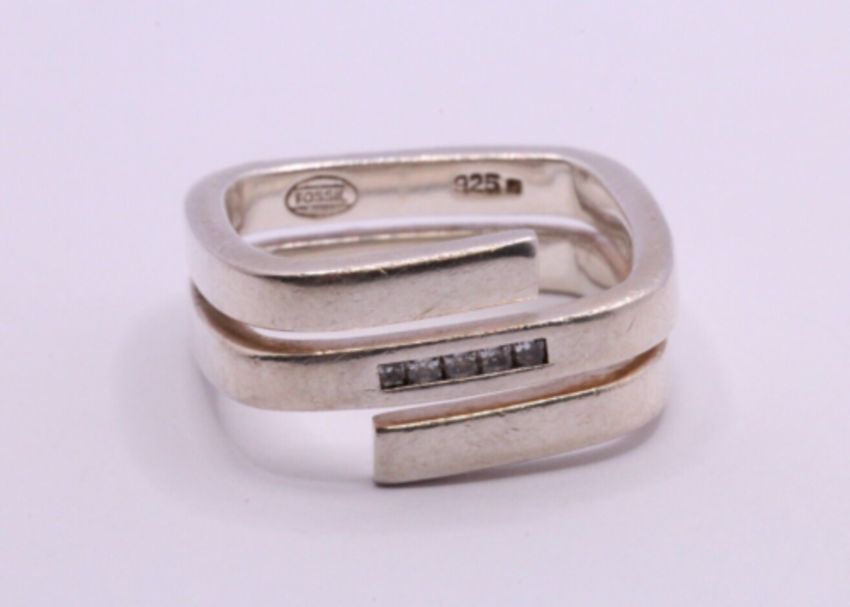 Here we have a spectacular Fossil sterling silver square ring with precious simulated diamonds.