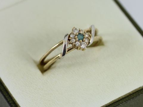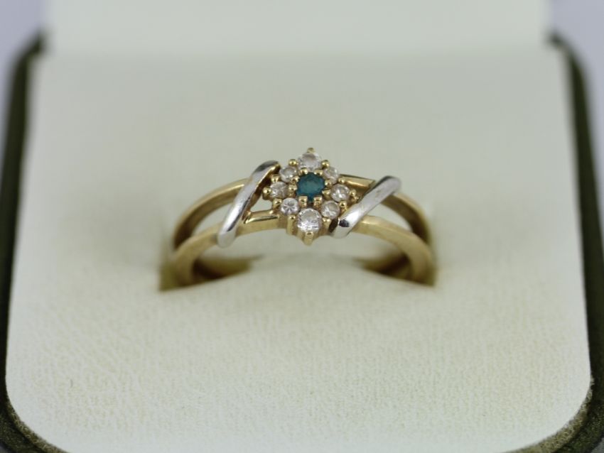 Here for sale, we have this magnificent ladies ring. A beautiful London blue topaz surrounded by eight CZ stones set on a lovely 9ct yellow gold shank with white gold accents.