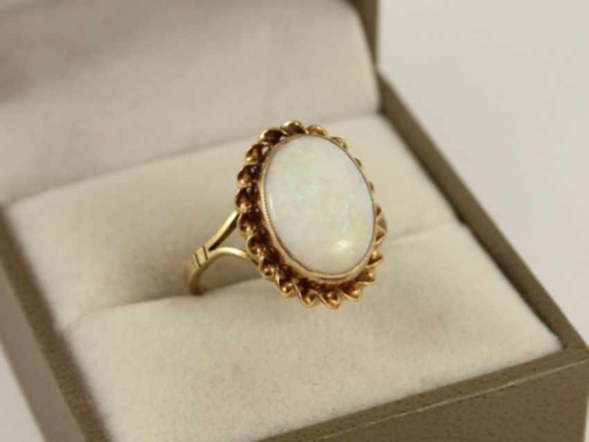 Here for sale, we have this beautiful ring, made from 9ct yellow gold with a gorgeous style and set with a lovely opal singlet.