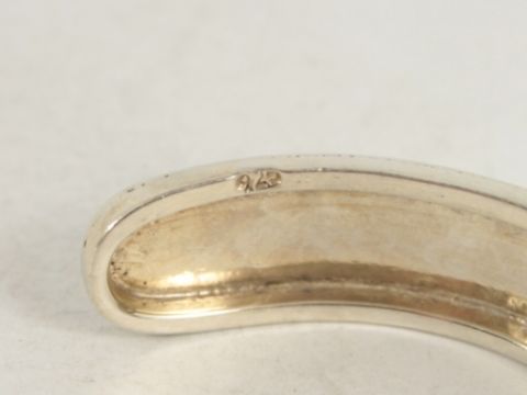 Here for sale we have this beautiful ladies bangle made from sterling silver with a gorgeous style and design. Weight: 20.6 grams Circumference: 6.75 inches Internal diameters: 62mm x 45mm Width: 12mm Please take a look at our other items for sale. |