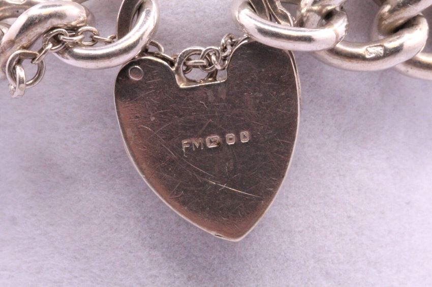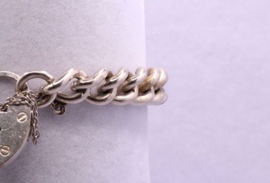 Here we have a magnificent Sterling silver cable link style chain bracelet with a precious love heart padlock clasp.