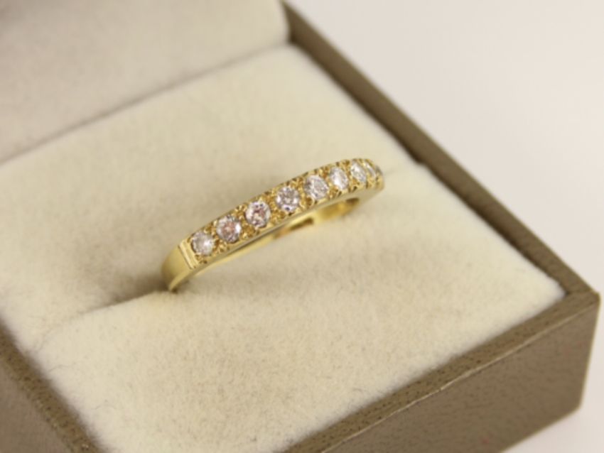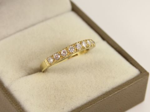 Here for sale, we have this magnificent half eternity ring. Nine brilliant cut diamonds weighing a total of approx 0.33ct set on a lovely 18ct yellow gold shank.