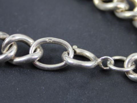 Here for sale, we have this curb chain bracelet made from sterling silver. Weight: 31.6 grams Length: 9 inches Width: 9mm |