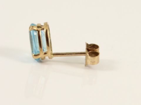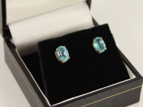 Here for sale, we have this magnificent pair of ladies earrings made from 9ct yellow gold and each set with a lovely sky blue topaz stone.