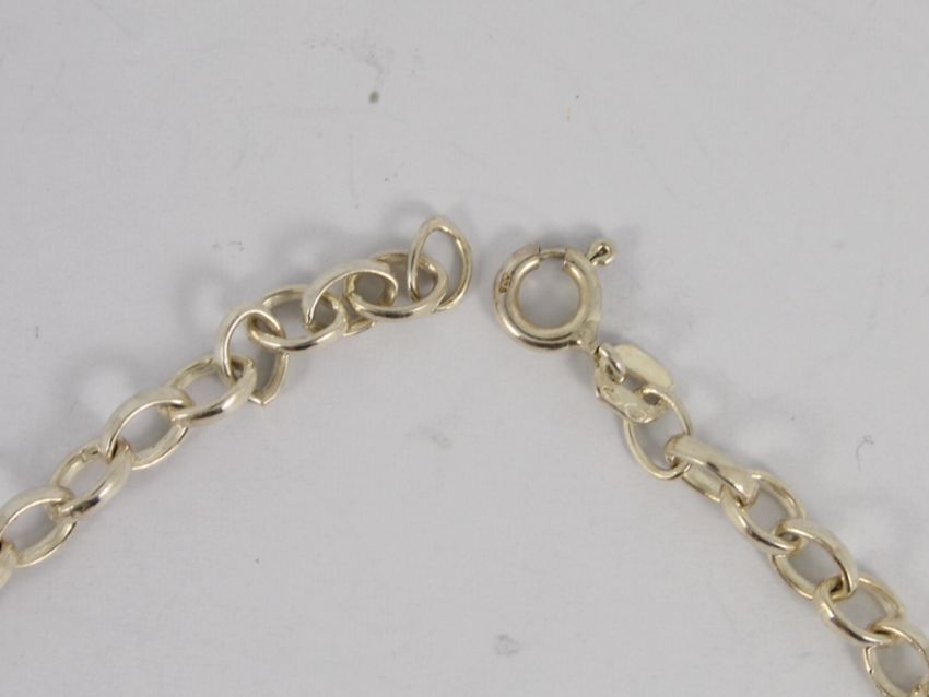 Here for sale, we have this magnificent cable chain necklace made from sterling silver. Weight: 9.4 grams Measures: 16.25 inches Width: 4mm |