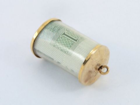 Made from 9ct gold with a one pound note encased inside.