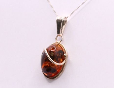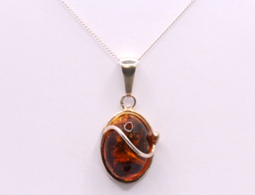 Here we have a stunning Amber gemstone pendant on a class sterling silver Cuban chain necklace.