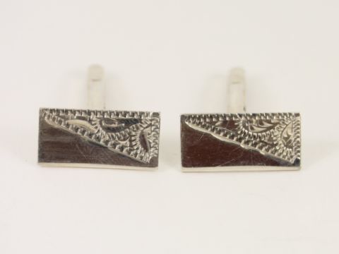 | Here for sale, we have this magnificent pair of gents vintage cufflinks. Made from sterling silver with wonderful ornately engraved patterns Cufflinks faces measure: 20mm x 10mm Weight: 5.8 grams |