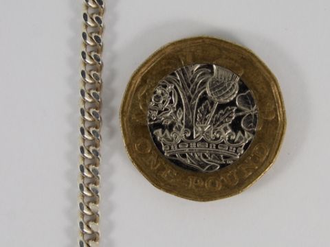 Here for sale, we have this magnificent curb chain necklace made from sterling silver. Weight: 14.8 grams Measures: 18 inches Width: 4mm |