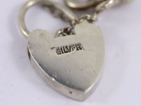 Here for sale we have this beautiful ladies curb chain bracelet, made from sterling silver with a lovely heart padlock clasp.