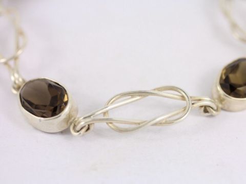 Here for sale we have this magnificent ladies square knot bracelet, made from sterling silver and set with beautiful oval facet cut smoky quartz stones. Length: 8.25 inches Width: 11mm Weight: 15.2 grams |